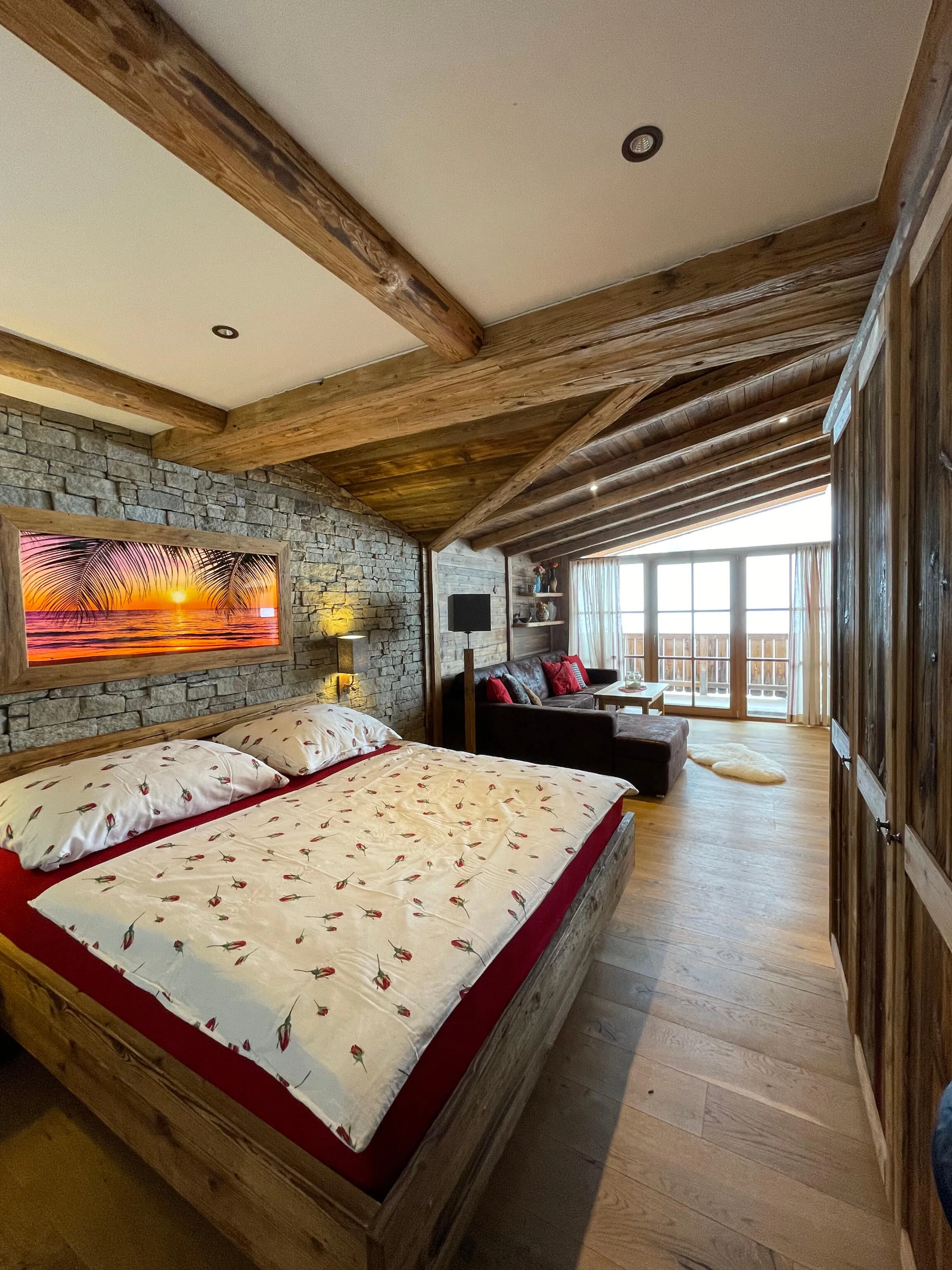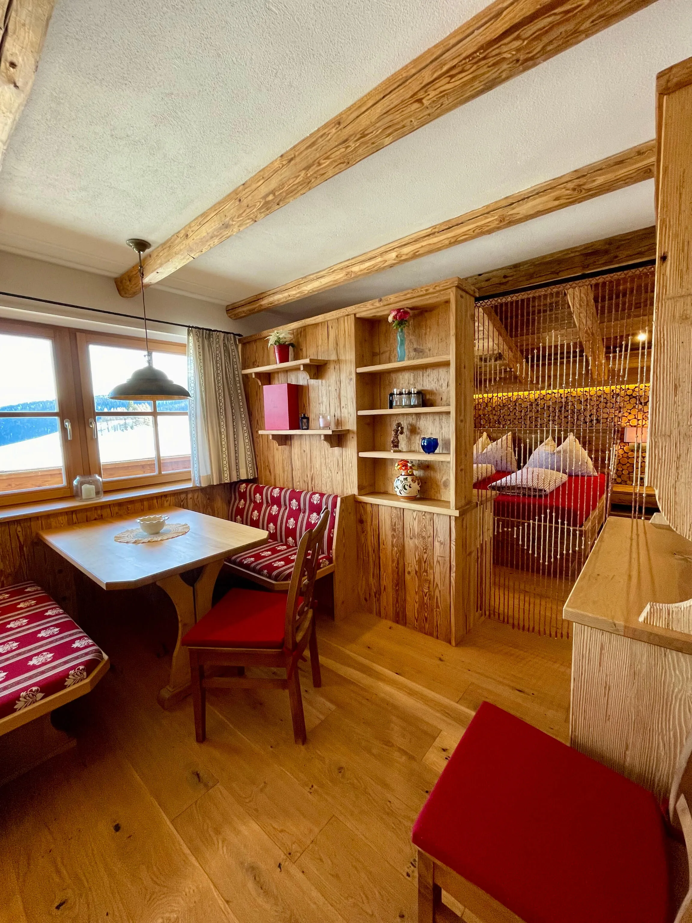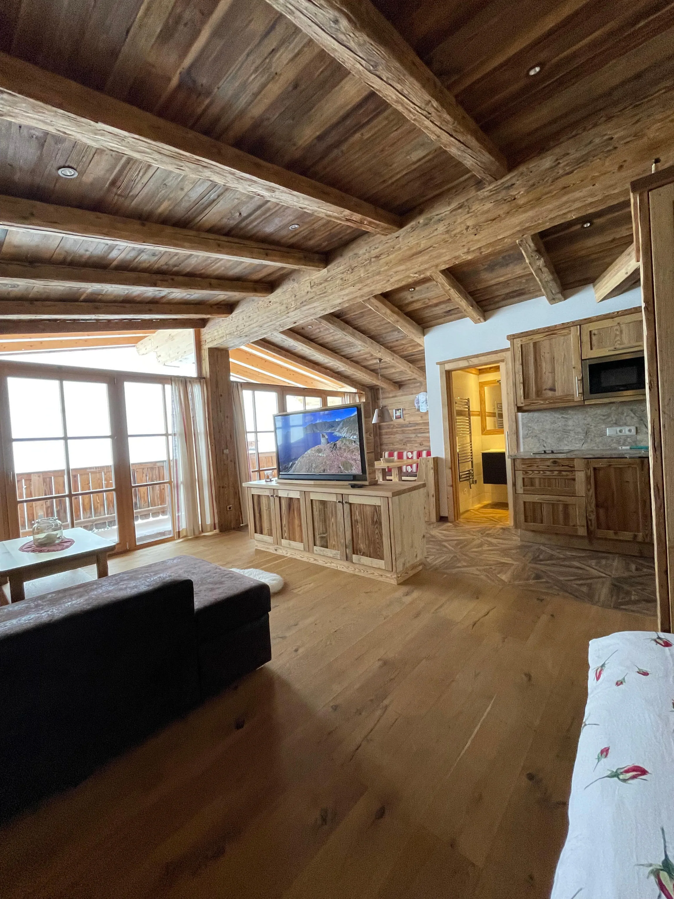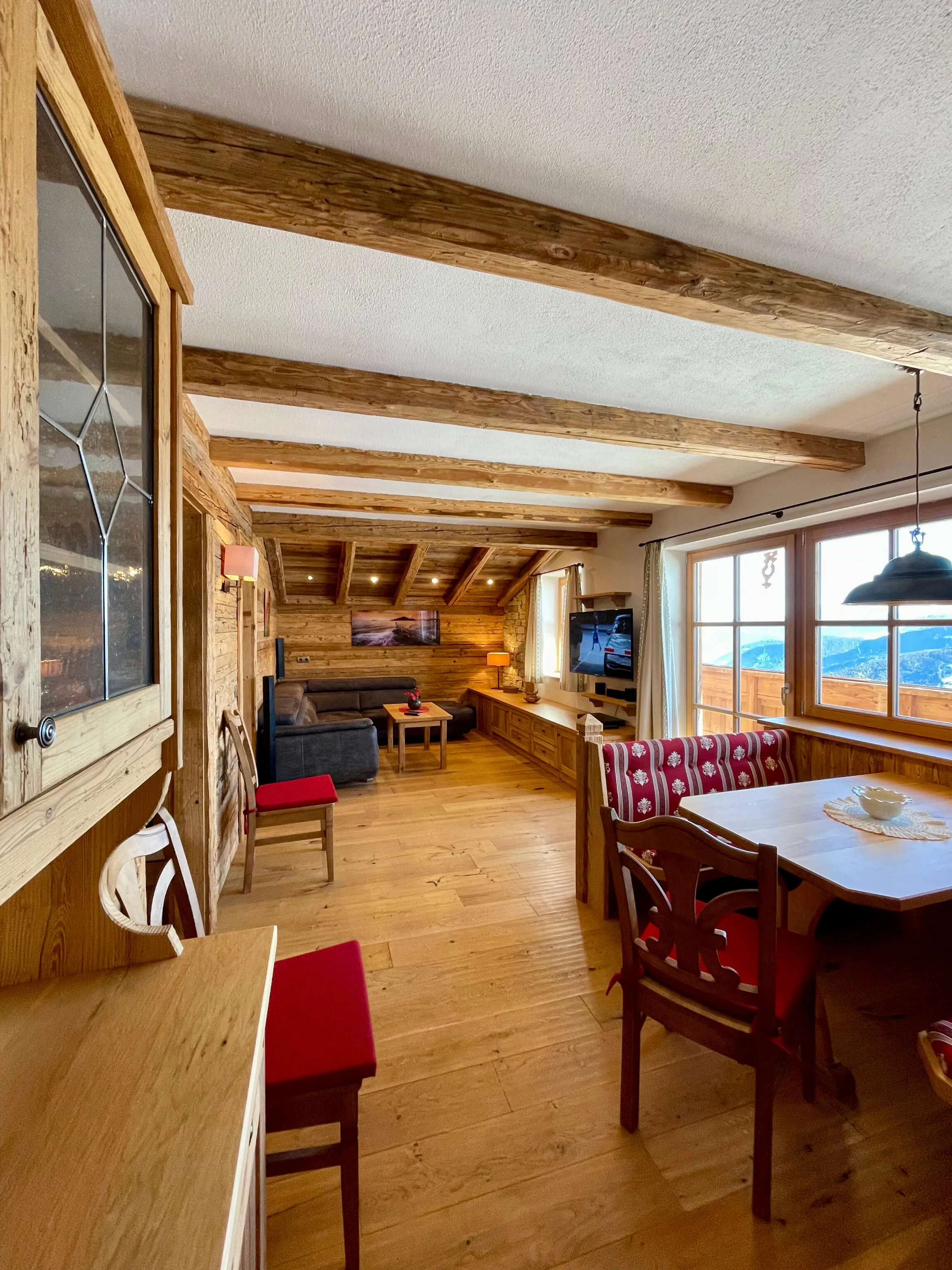 bestehend aus: Essbereich, ausgestattete Küchenzeile, Wohnraum mit ausziehbarer Couch, 1 Doppelbett, Bad, Toilette, eigener Balkon, Verbindung zum Appartement „Reiter Alm“ auf Wunsch möglich, freier WLAN Zugang, direkt an der Schipiste.