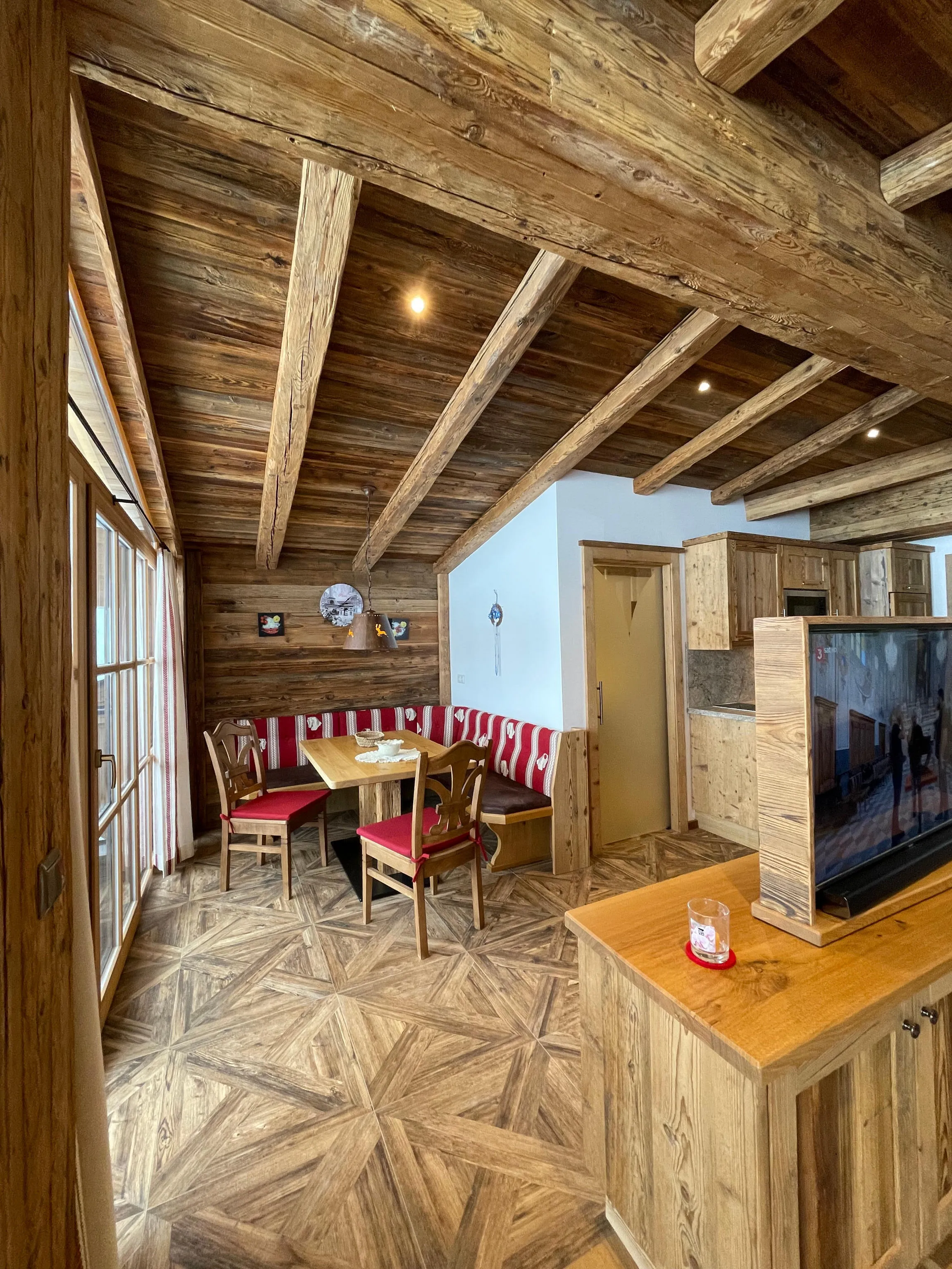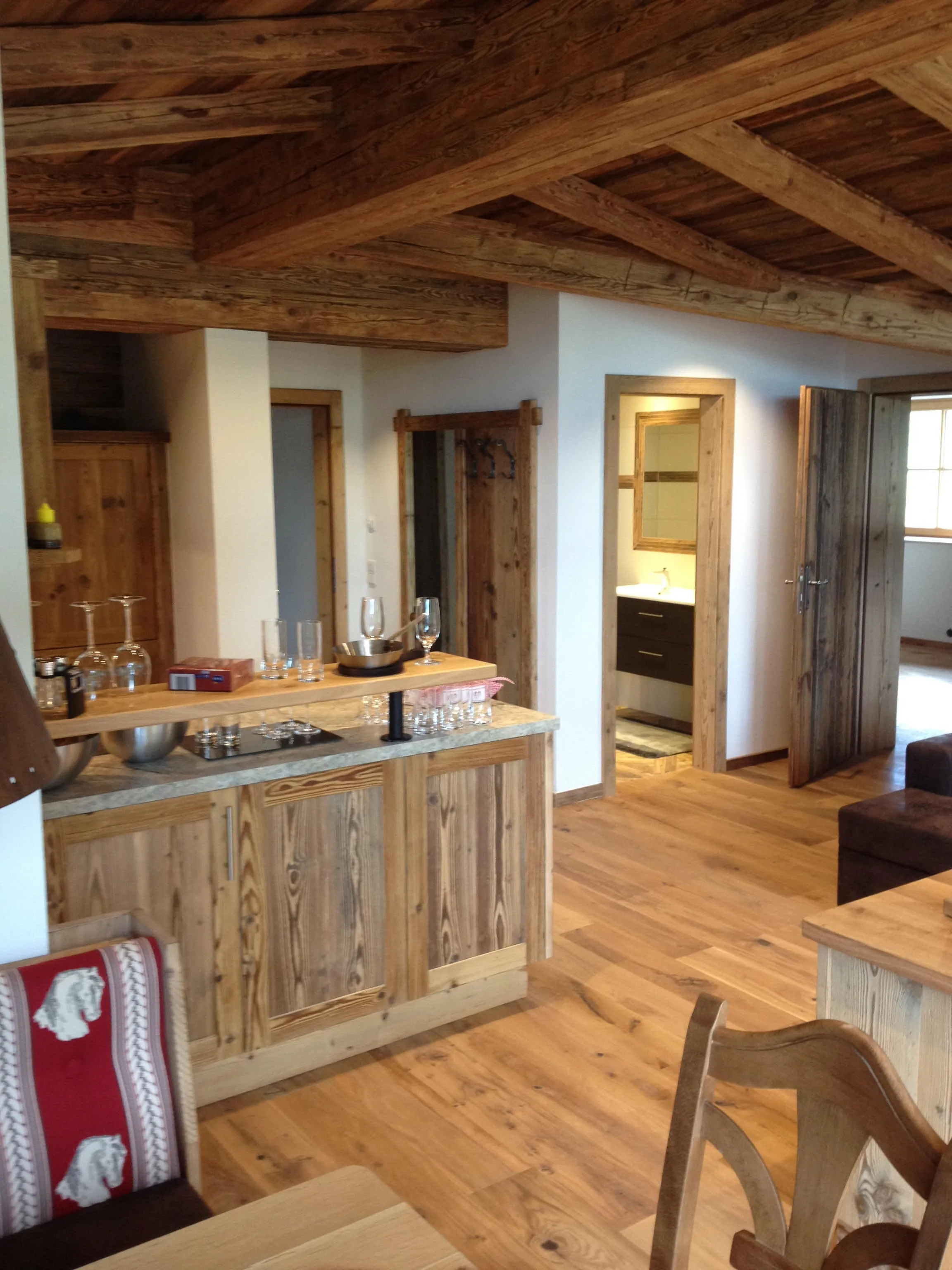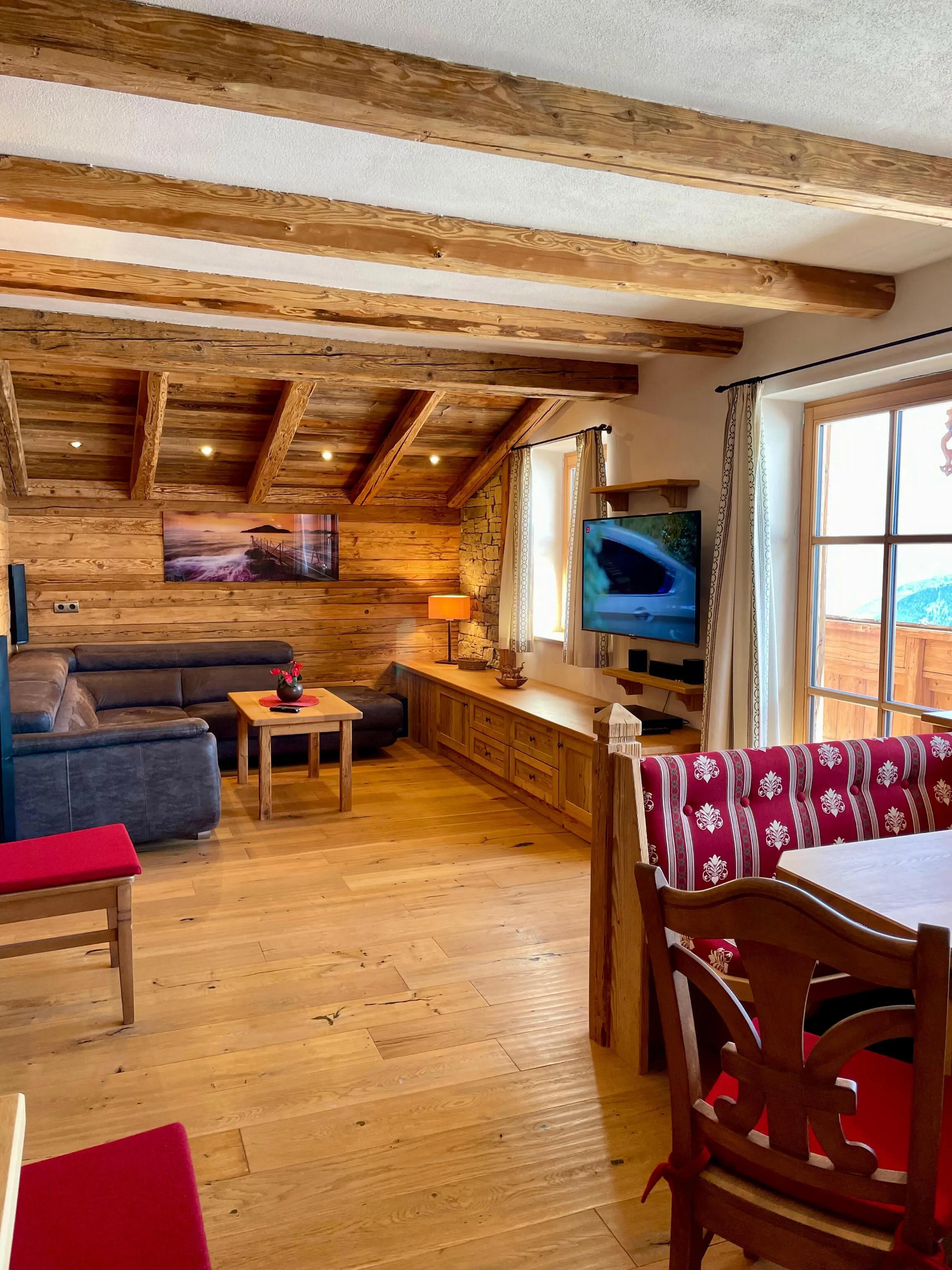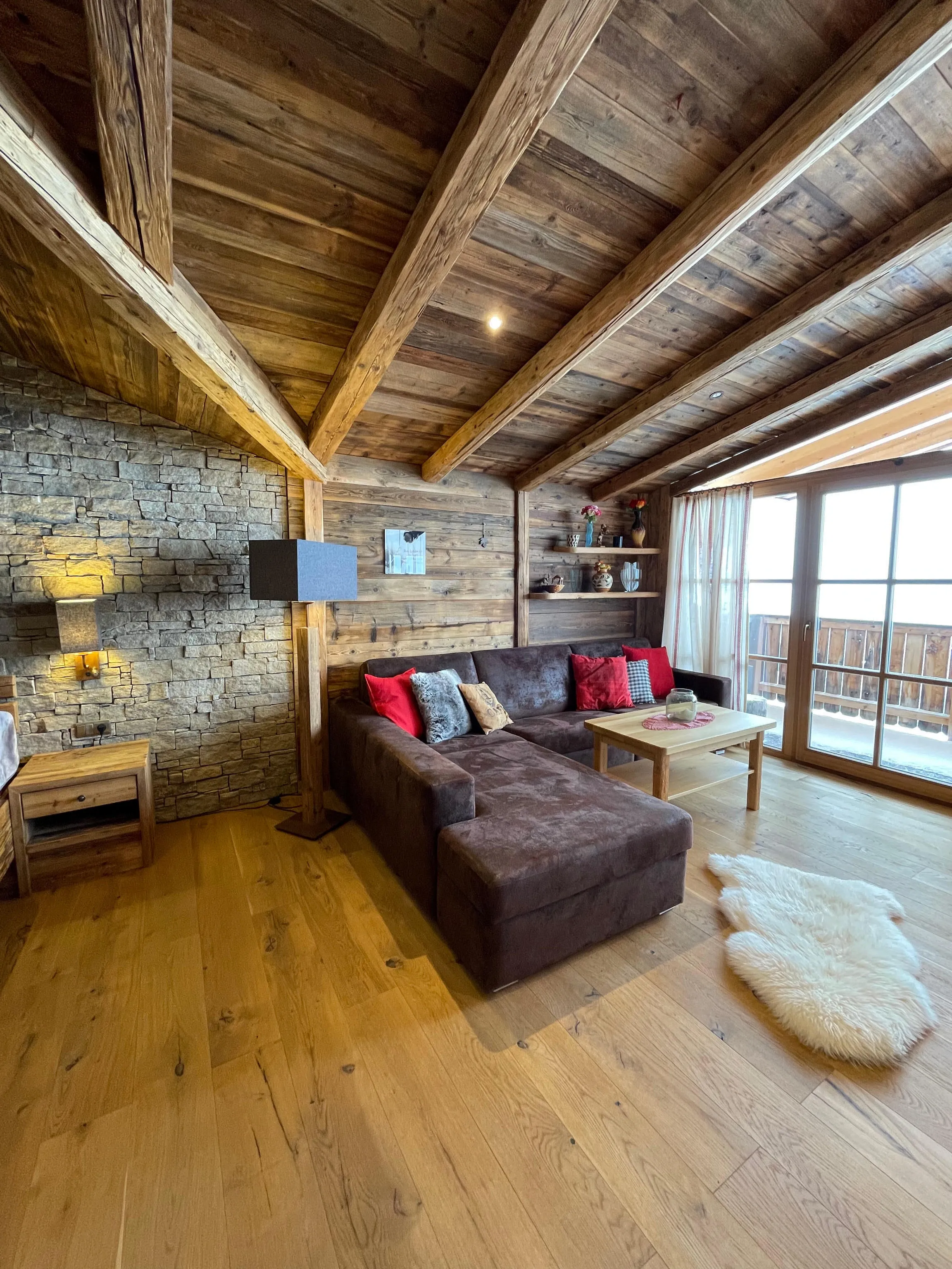 bestehend aus: Essbereich, ausgestattete Küchenzeile, Wohnraum mit ausziehbarer Couch, 1 Doppelbett, Bad, Toilette, eigener Balkon, Verbindung zum Appartement "Grenzstadl" auf Wunsch möglich – w/4 Personen, direkt an der Schipiste, freier WLAN Zugang